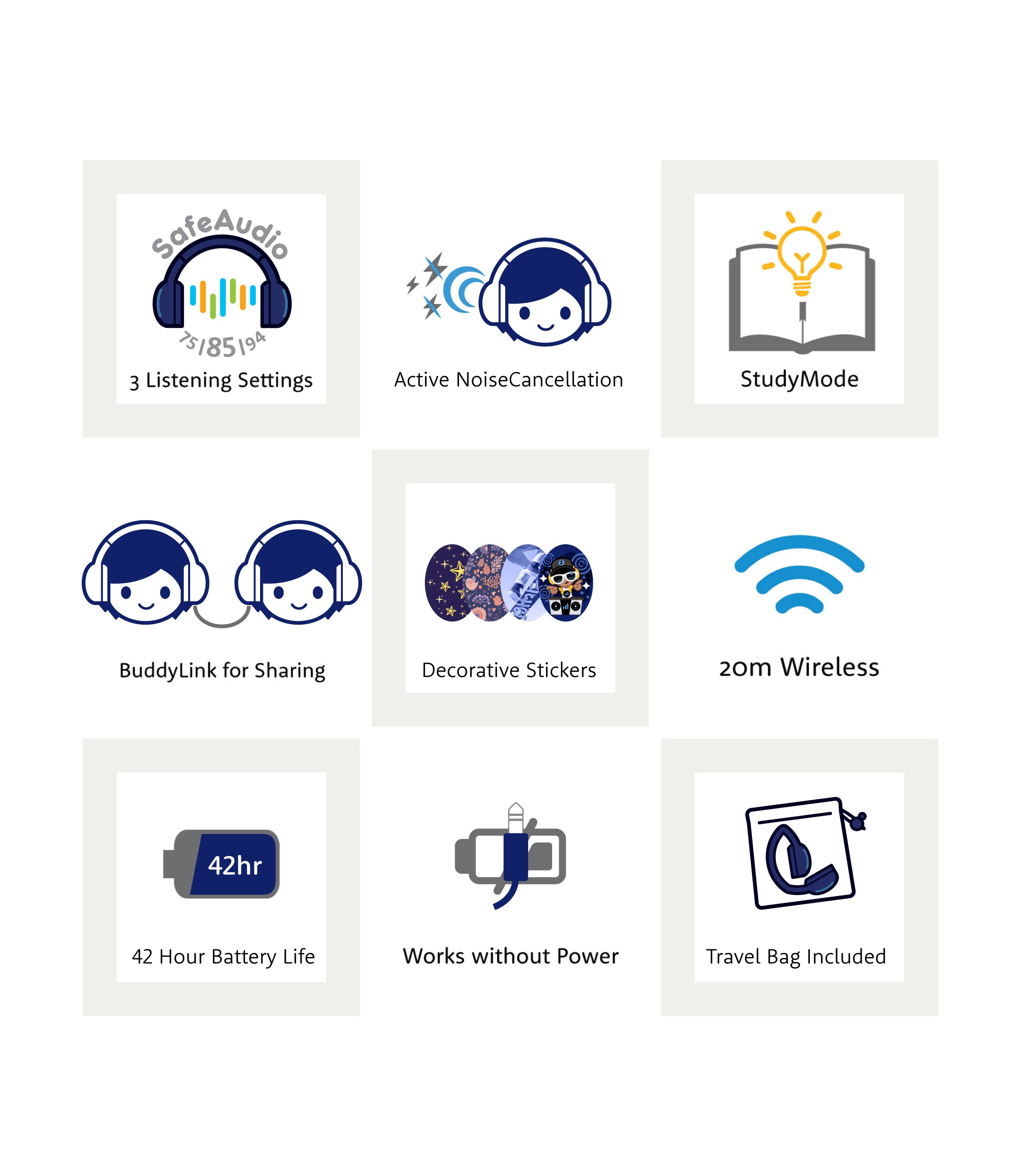 • Safe for Kids – Every BuddyPhones & StoryPhones are volume‑limited to protect growing ears.