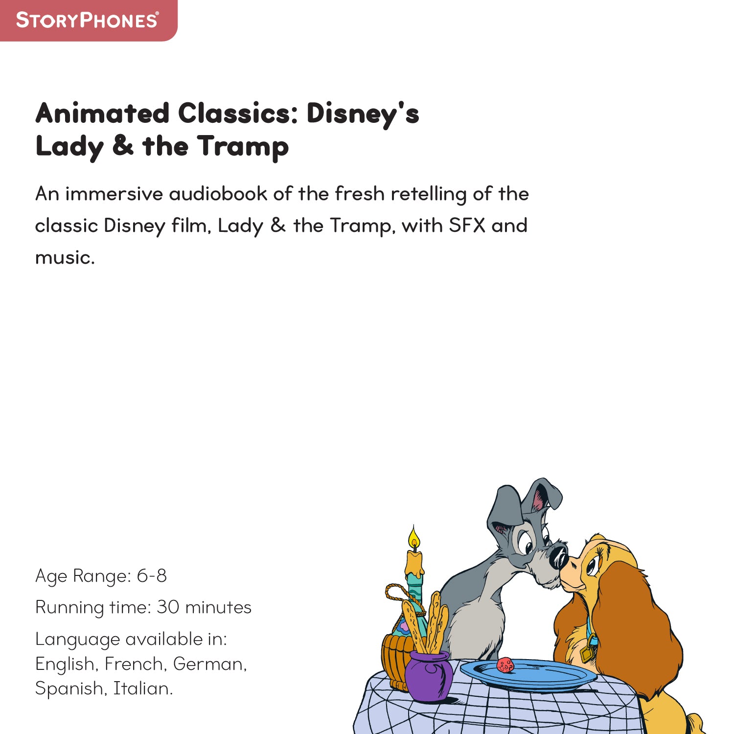 Product form Animated Classics: Disney's Lady & the Tramp €8,95Excl. VAT SKU: STAC-LADY AND THE TRAMP Barcode: 840173601808 Add to cart This item is a recurring or deferred purchase. By continuing, I agree to the cancellation policy and authorize you to charge my payment method at the prices, frequency and dates listed on this page until my order is fulfilled or I cancel, if permitted. Shipped today? Order within: Oct 08, 2025 17:00:00 +0800 Share with your friends Share WhatsApp Deel X Pin it Messenger Email