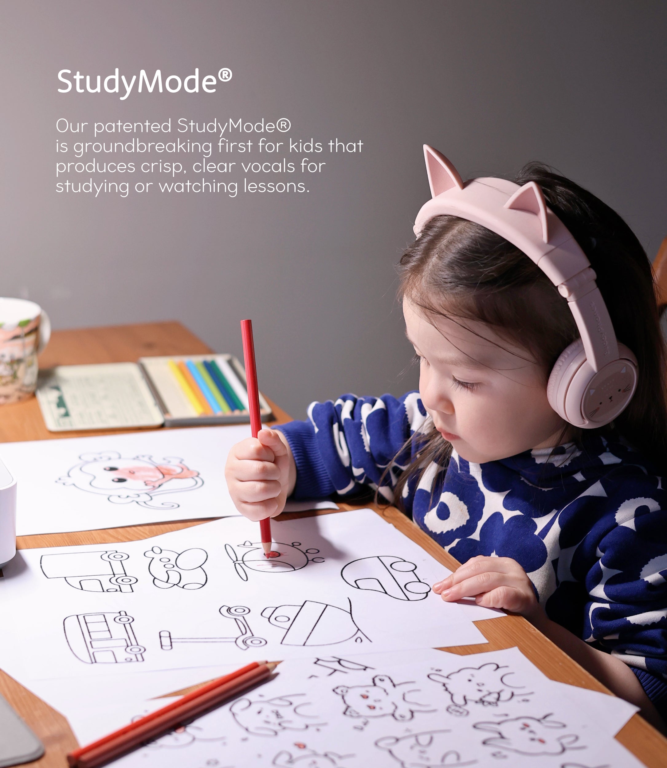 Our patented StudyMode® is groundbreaking first for kids that produces crisp, clear vocals for studying or watching lessons.