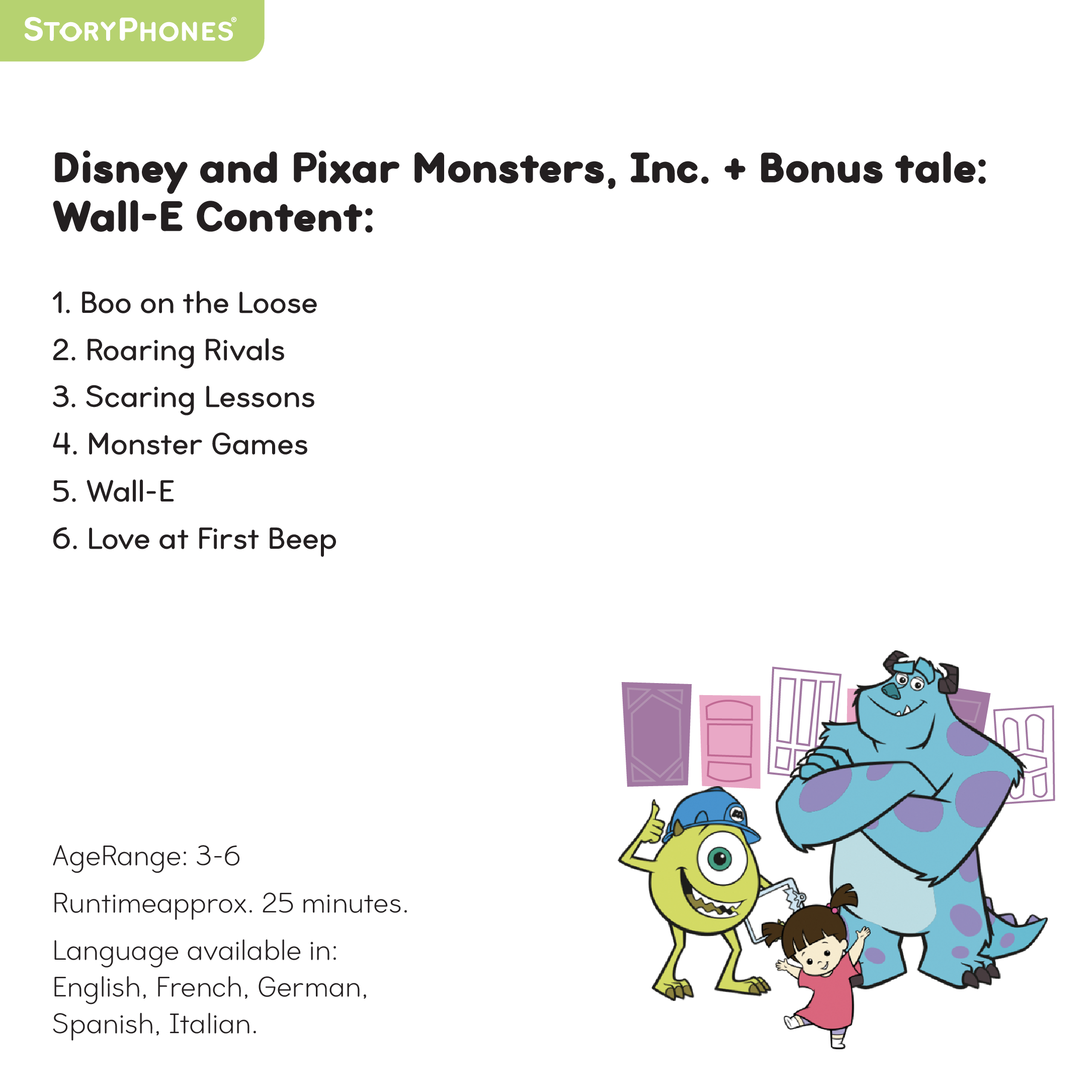 Disney and Pixar Monsters, Inc. + Bonus tale: Wall-E StoryShield