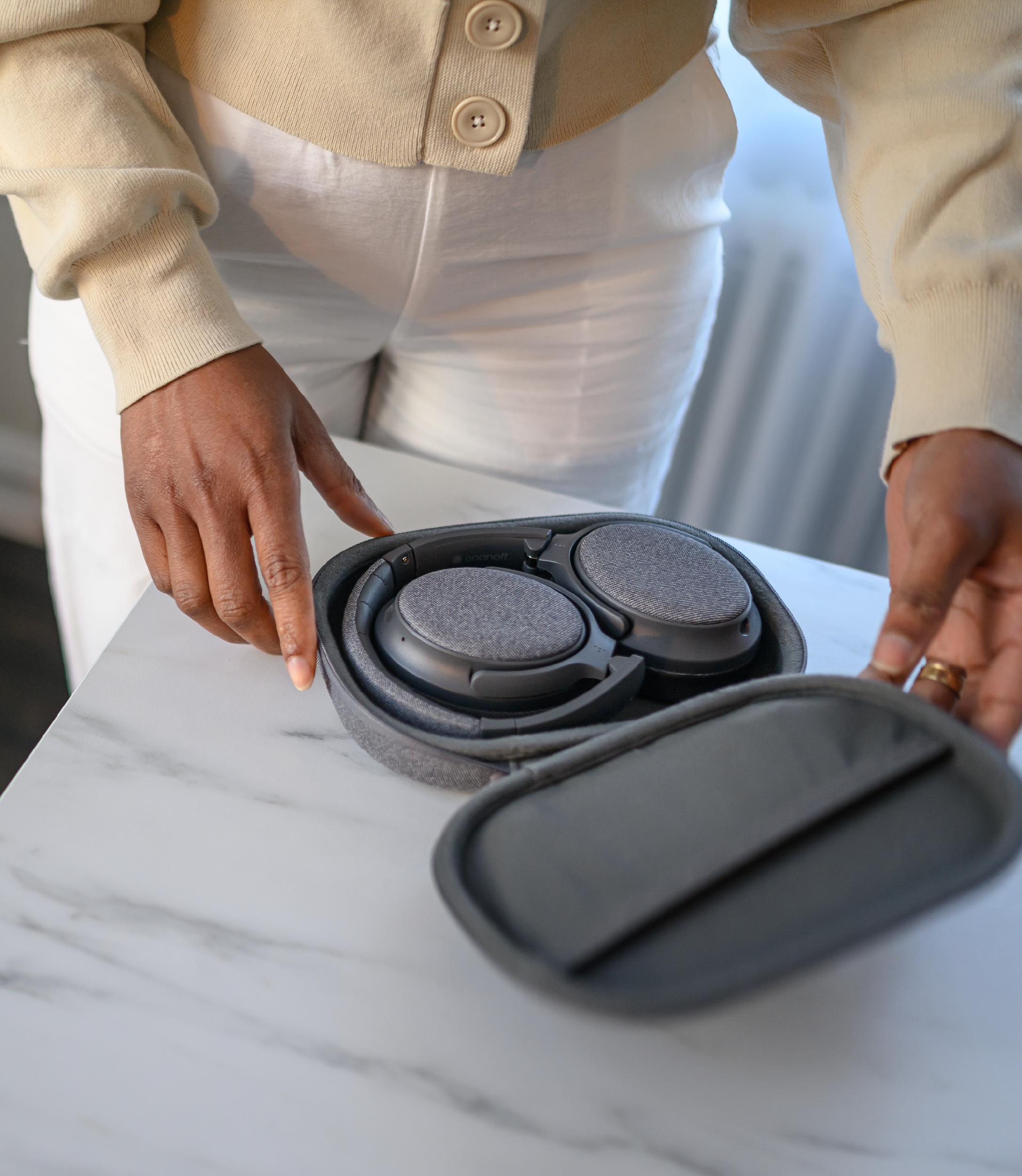 The FOKUS+ boast the convenience with its woes charging stand, enabling a seamless and user-friendly experience. Simply place the headphones on the stand and it will automatically switch off and start charging.