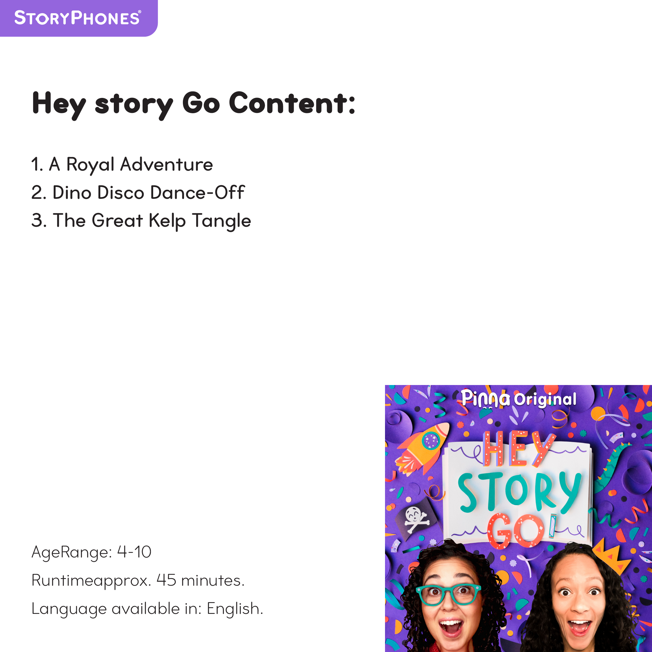 Storytellers Carly C and KB take you on wild, musical, fantastical story adventures in Hey Story Go! But they can't do it alone – they need your help to keep the story moving. So listen along, get up on your feet, and get in on the action to help make the stories…go!